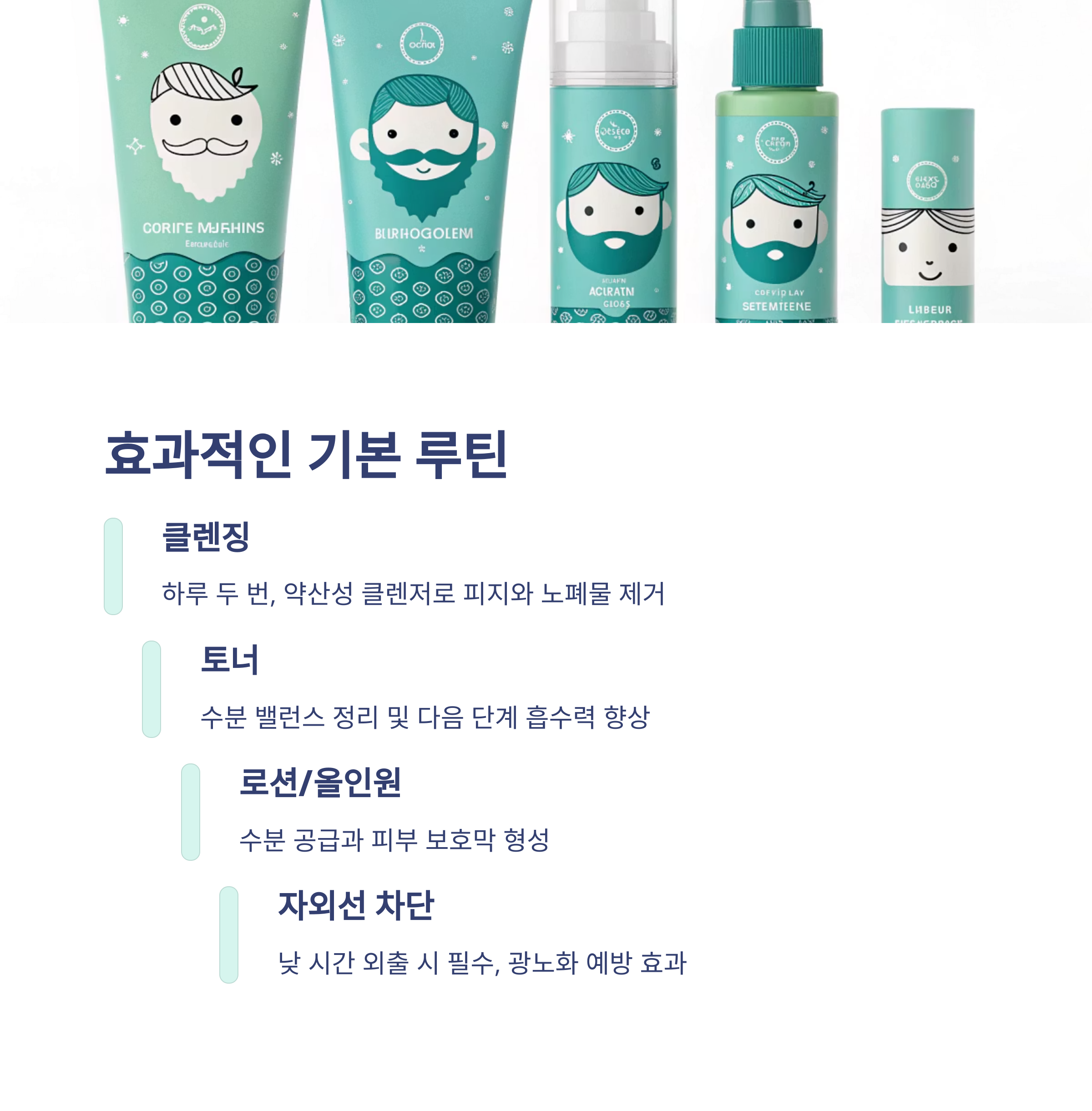 남성에게 권장되는 기본 루틴은 단순하지만 효과적이어야 합니다.