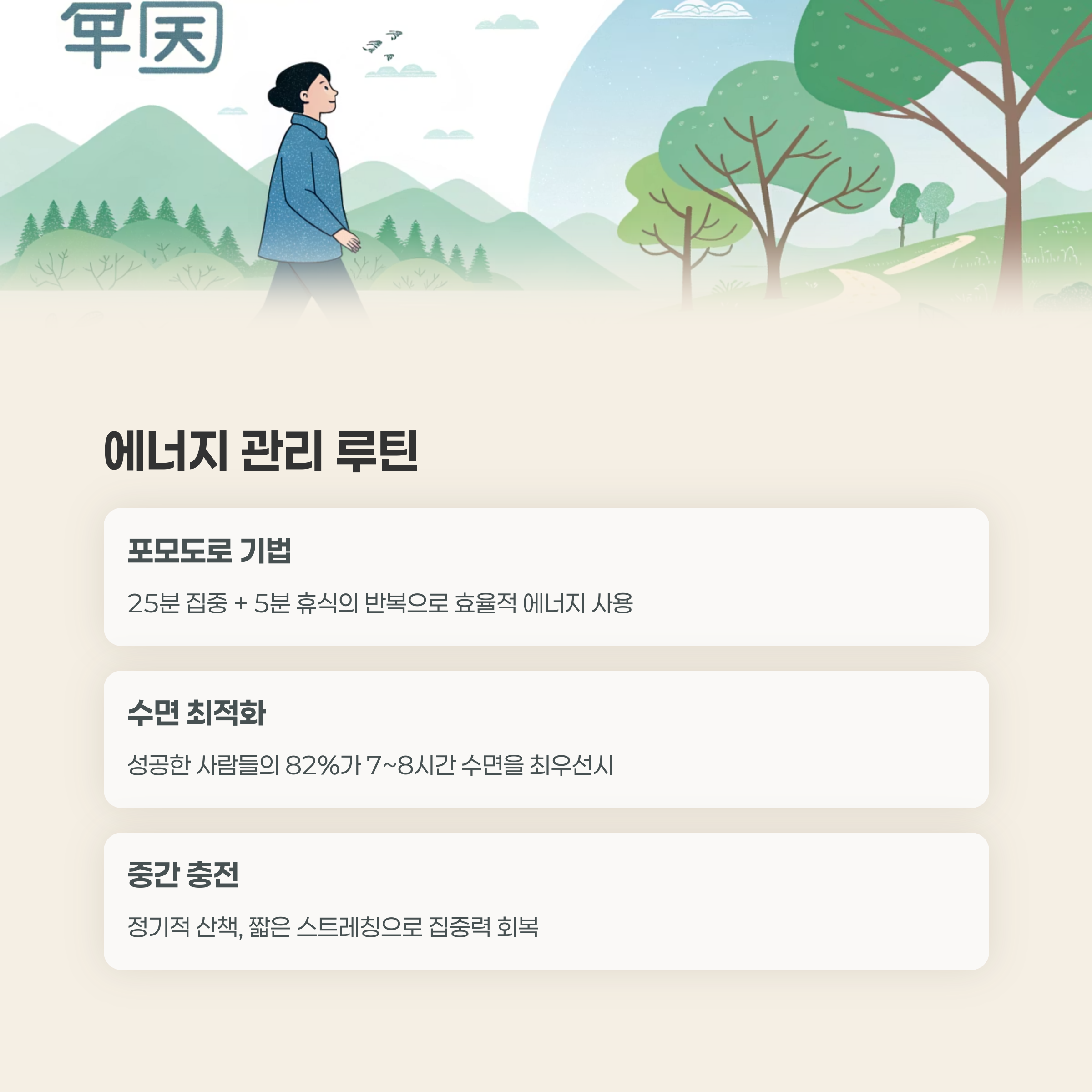 에너지 충전을 루틴 속에 자연스럽게 녹입니다