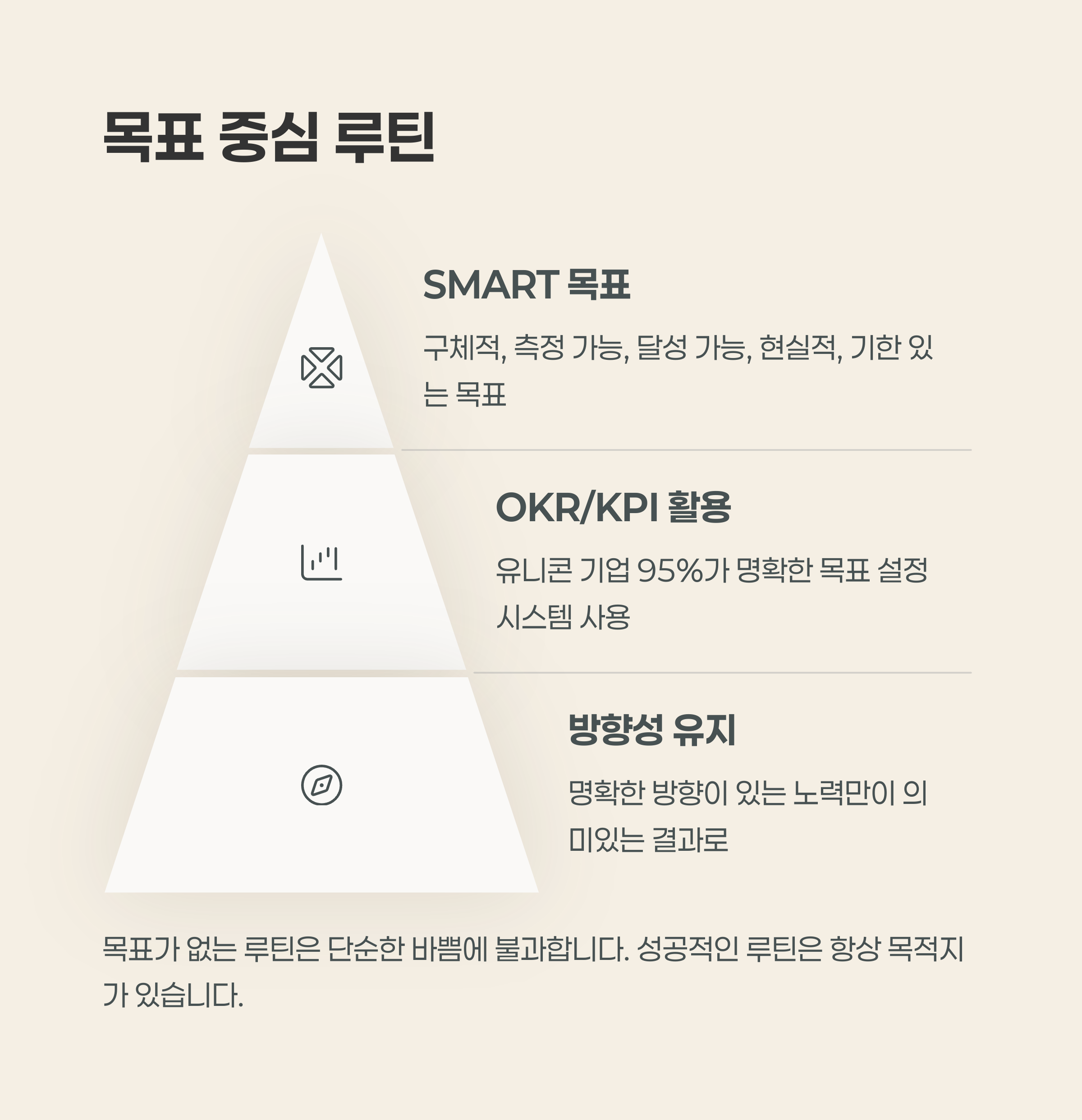 목표 없는 루틴은 쉽게 지루해지고 무너지기 때문입니다