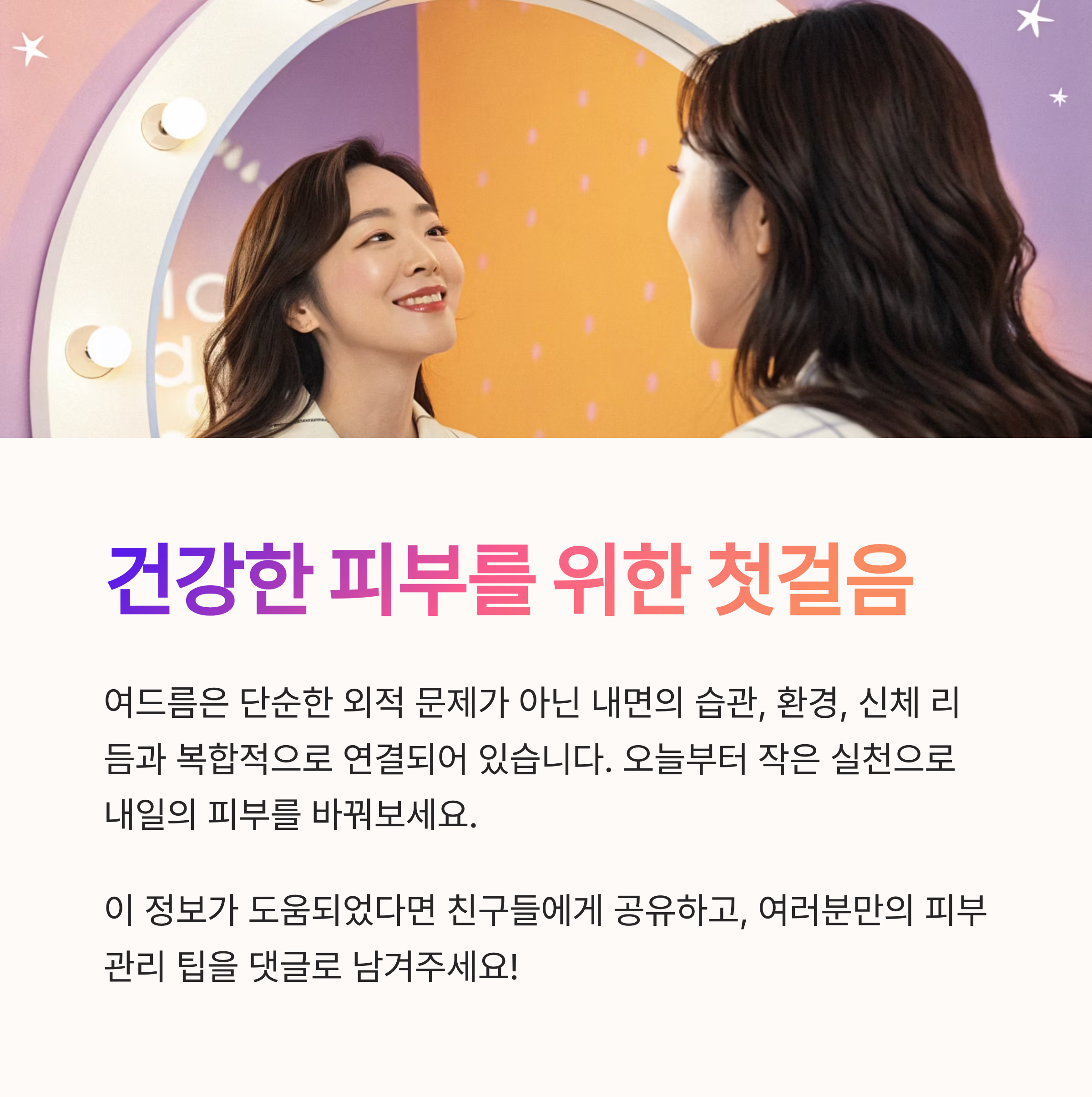 오늘부터 시작하는 작지만 꾸준한 실천이 내일의 피부를 바꿀 수 있습니다.
