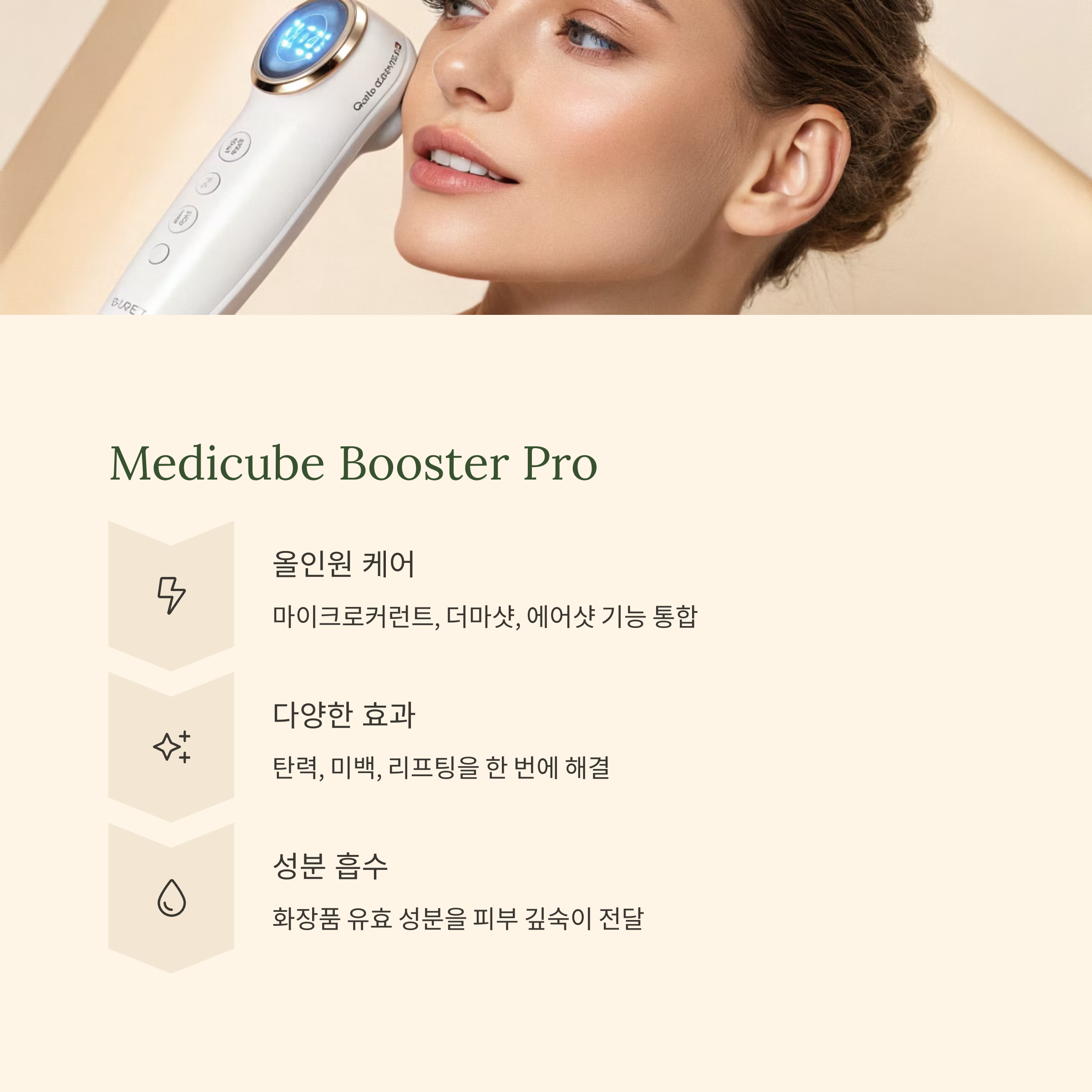 | 복합적인 문제 (탄력, 미백) | 올인원 멀티 기능 | 메디큐브 부스터 프로 |