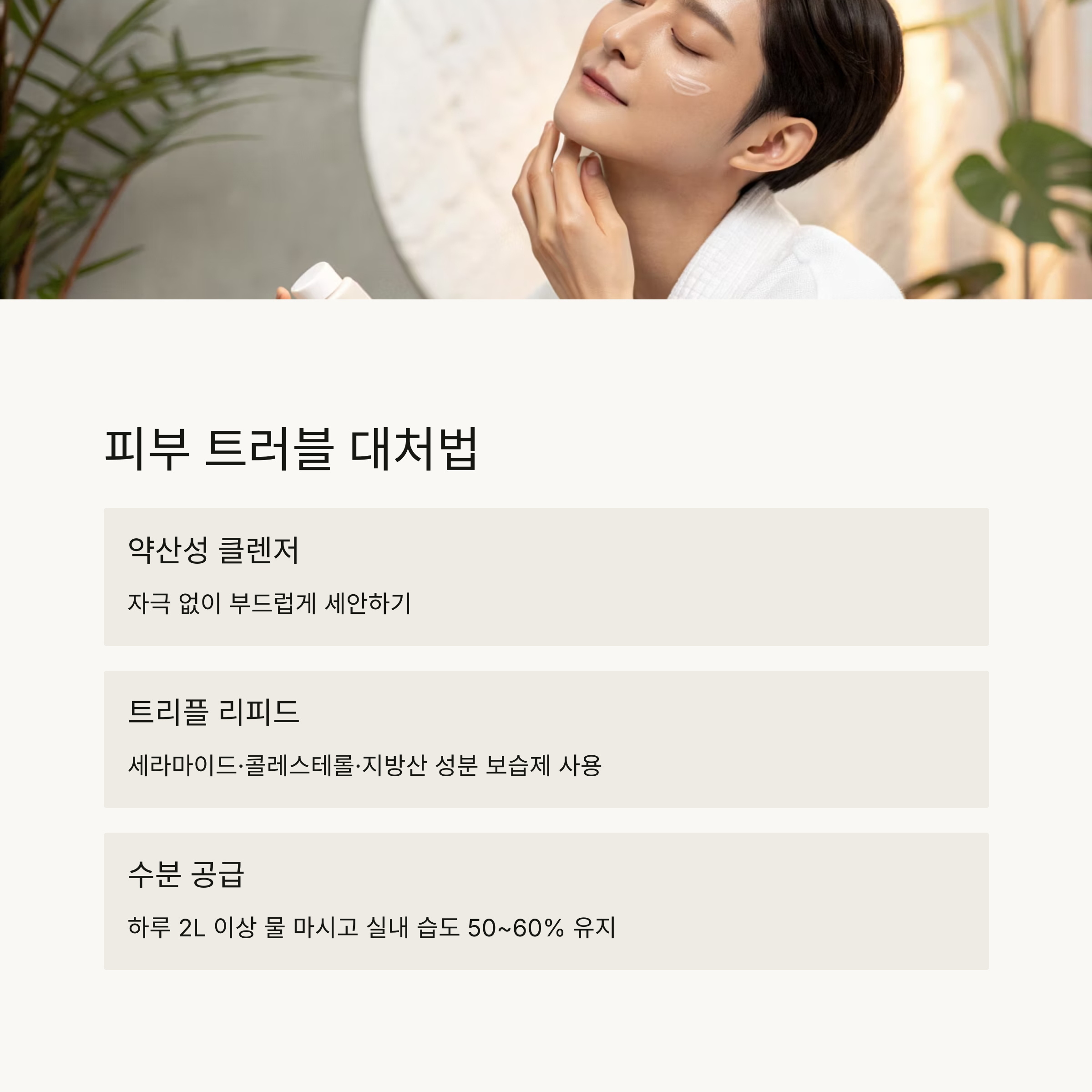 트리플 리피드(세라마이드·콜레스테롤·지방산) 성분이 함유된 보습제를 사용하세요.