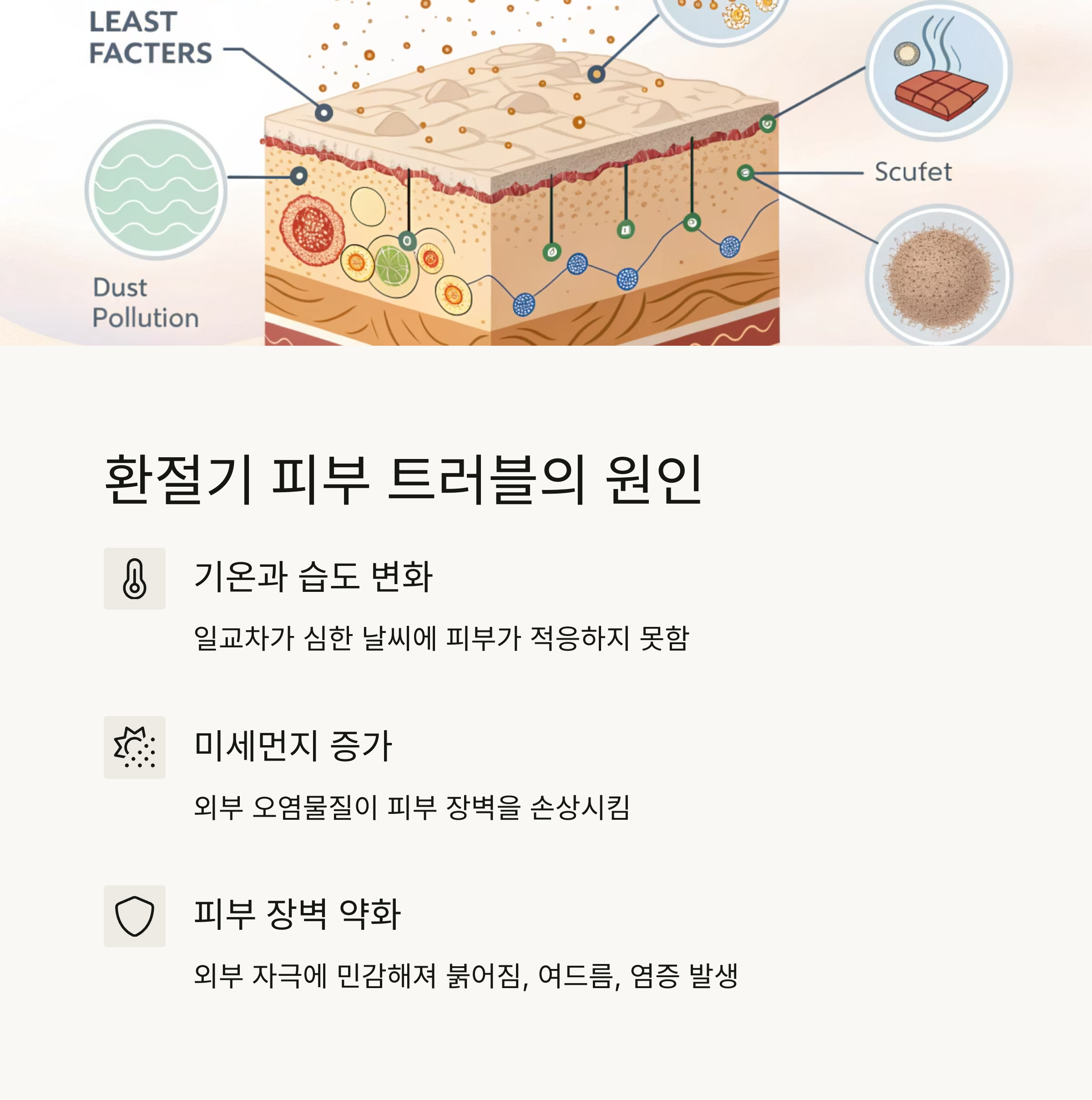 피부 장벽이 손상됩니다. 특히 봄이나 가을철처럼 일교차가 심한 날씨에는